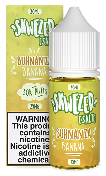 Go B-a-n-a-n-a-s with Skwezed’s Banana Salt Nic E-Liquid! A delicious tropical fruit flavor taken to the next level! With a 30ml dosage of delicious e-liquid, sit back, relax, and take a puff while being enchanted by the subtly sweet fruit flavor of ripe bananas. One inhale will transport you to the tropical vibes of beachy waves and banana trees!