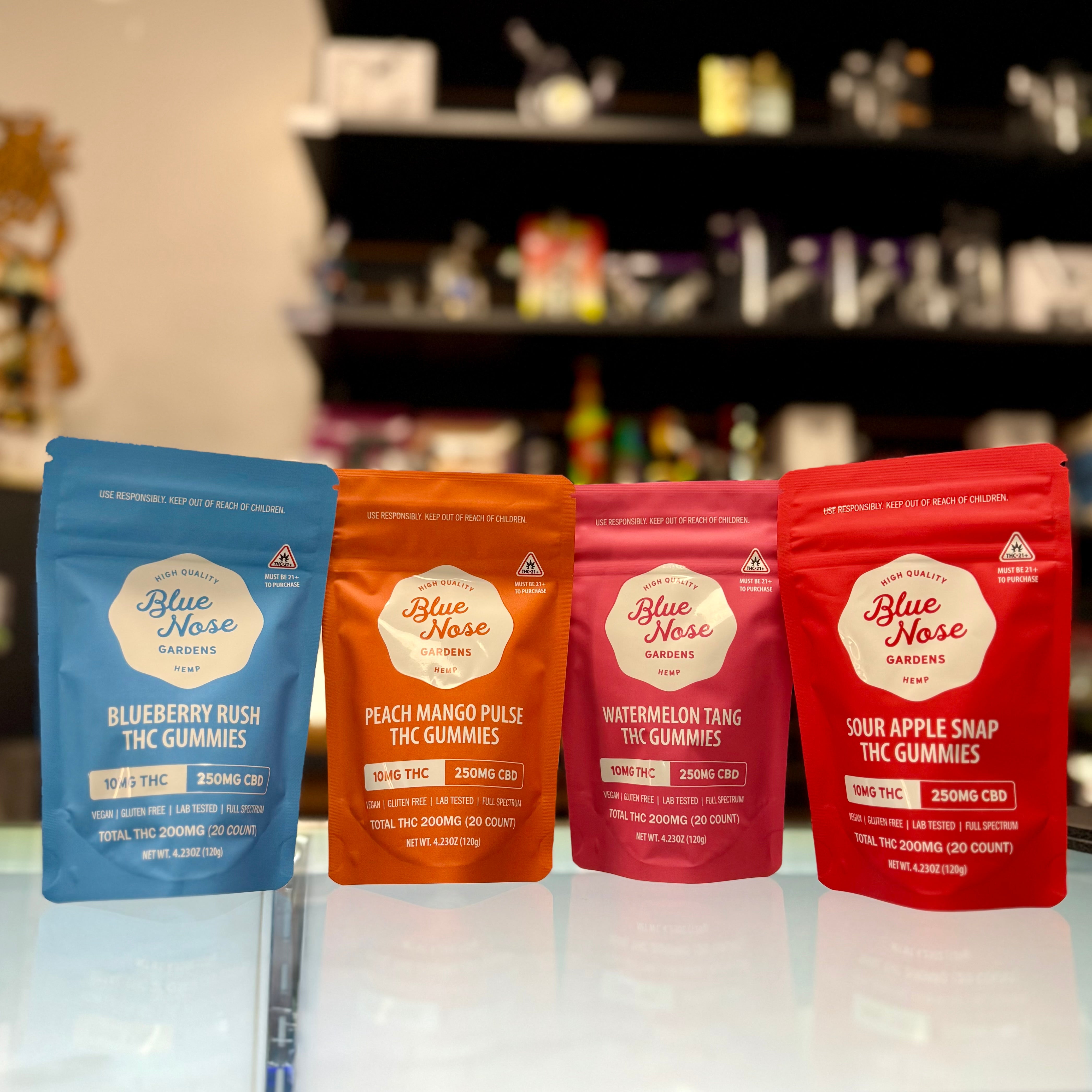 Blue Nose Gardens' gummies are created with high quality hemp and are infused with a 25:1 ratio of cannabinoids, 250mg CBD and 10mg THC per gummy. These gummies are also gluten free, vegan, non-GMO, and feature no artificial coloring or preservatives.