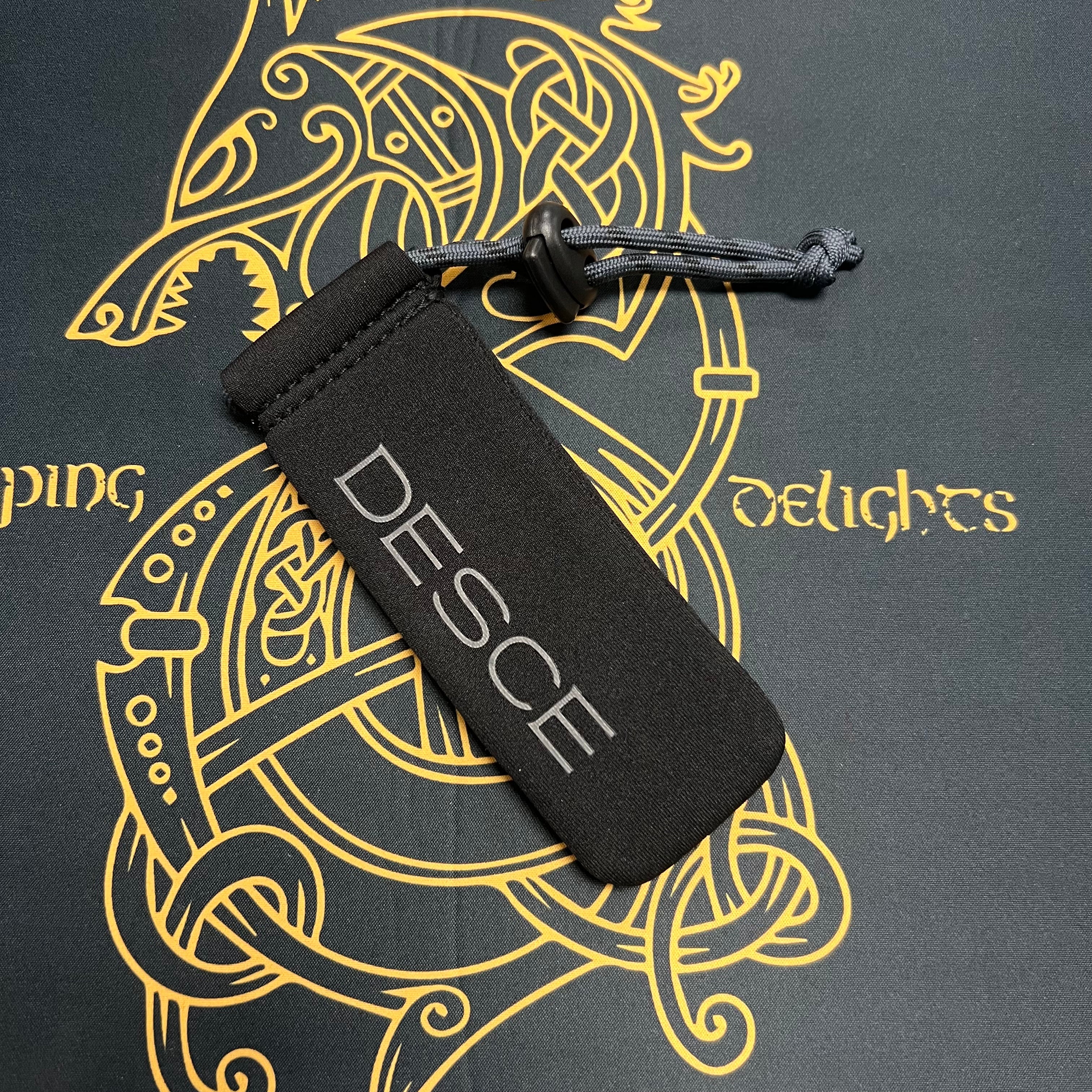 Desce uses a 3mm Neoprene sleeve with drawstring closure.