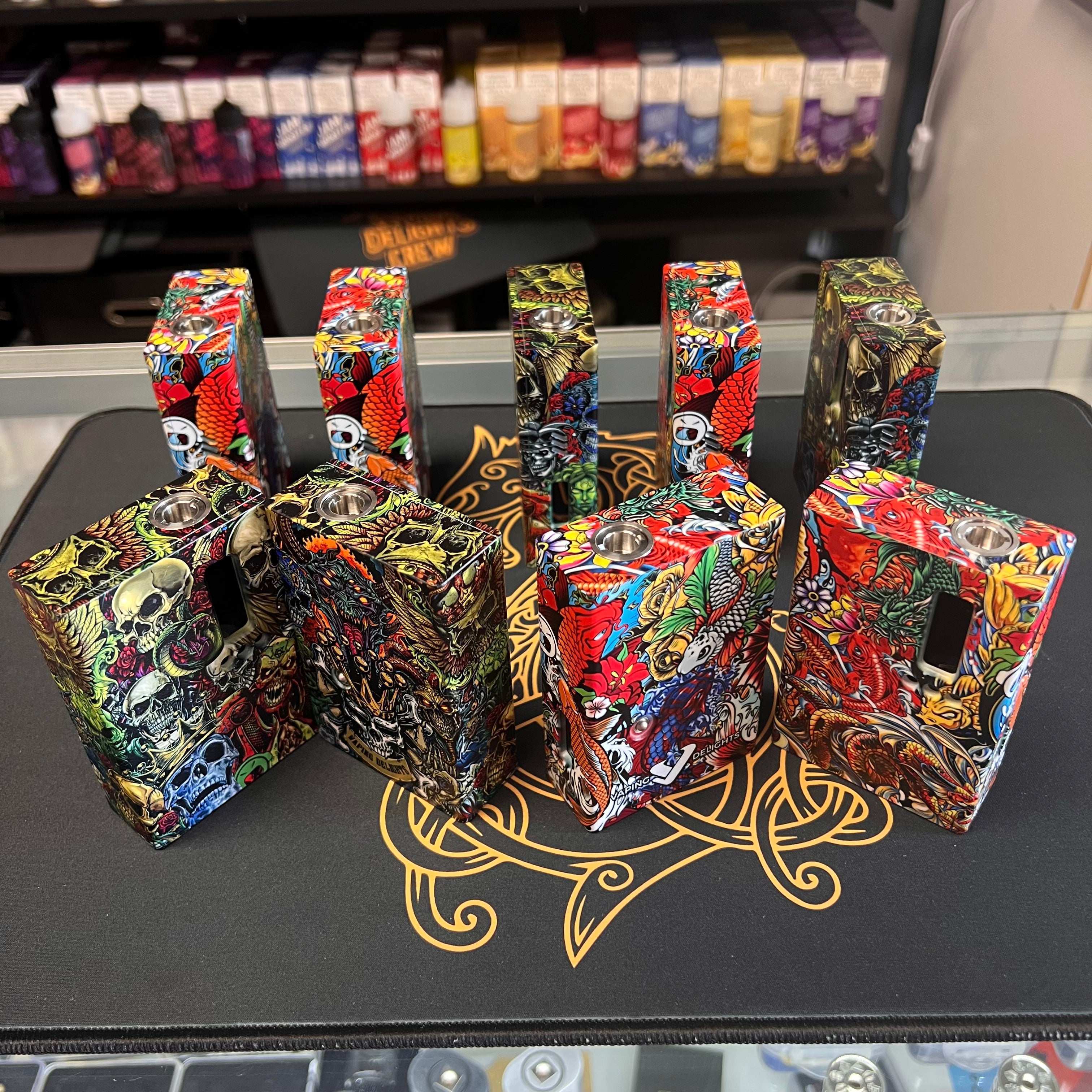 The Def-Boro uses the evolv DNA 60 chipset. The up/down adjustments are inside the mod and the fire button is on the back. Mod uses a single 21700 battery sold separately. Now using the industry standard Protocol flush nut and adjustable 510 pin.