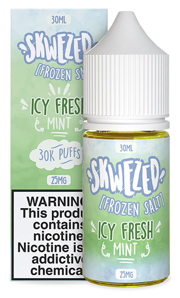 Mint and menthol are two things that are just destined to be together. Our Icy Fresh Freebase Frozen E-Liquid is an icy lover's dream! With the cooling sensation of minty freshness and the smooth burst of cooling flavor, enjoy the exhilarating adventure that comes through in every pull! Crisp, chill, and refreshing Skwezed’s Icy Fresh salt-nic Frozen E-Liquid is a must-try.