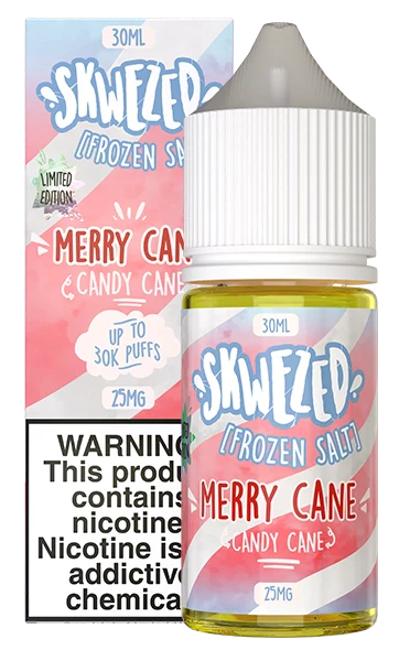 Introducing Skwezed’s Merry Cane Salt Nic E-liquid! This limited edition flavor is packed full of holly jolly cheer and fresh, frosty flavor! Bursting with bright peppermint notes and an undertone of subtle sweetness that tastes just like your favorite candy cane, indulge in a merry treat or discover your new go-to minty fresh flavor with Skwezed’s Merry Cane!
