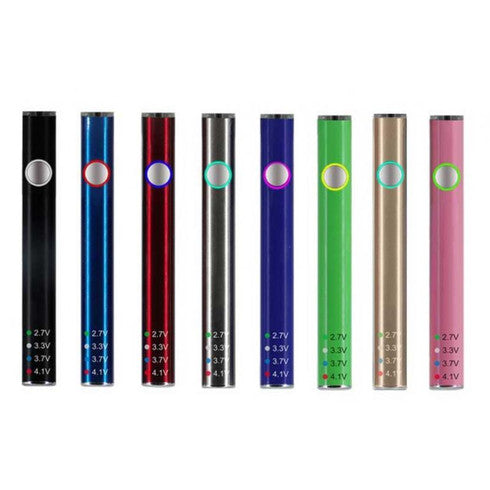 How to Use: Press the button 5 times to turn the device on and off. For the preheat option, press the button 2 times. To change the voltage, press the button 3 times and the LED indicator lights around the button will tell you what voltage it is set on; green is 2.7V, white is 3.3V, blue is 3.7V, and red is 4.1V. Remember to not charge the device over 4 hours.