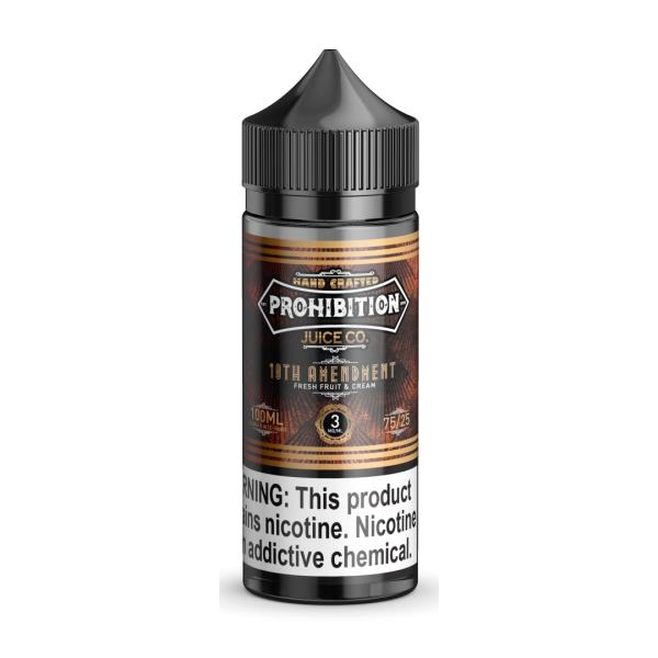 18th Amendment from Prohibition Juice Co. wants to take away your right to vape anything less than spectacular quality ejuice. Sweet watermelon and strawberry satisfies your fruity cravings, while the soft white peach, orange and cream provide a smooth and rich finish. Take back your right to vape perfection with 18th Amendment.