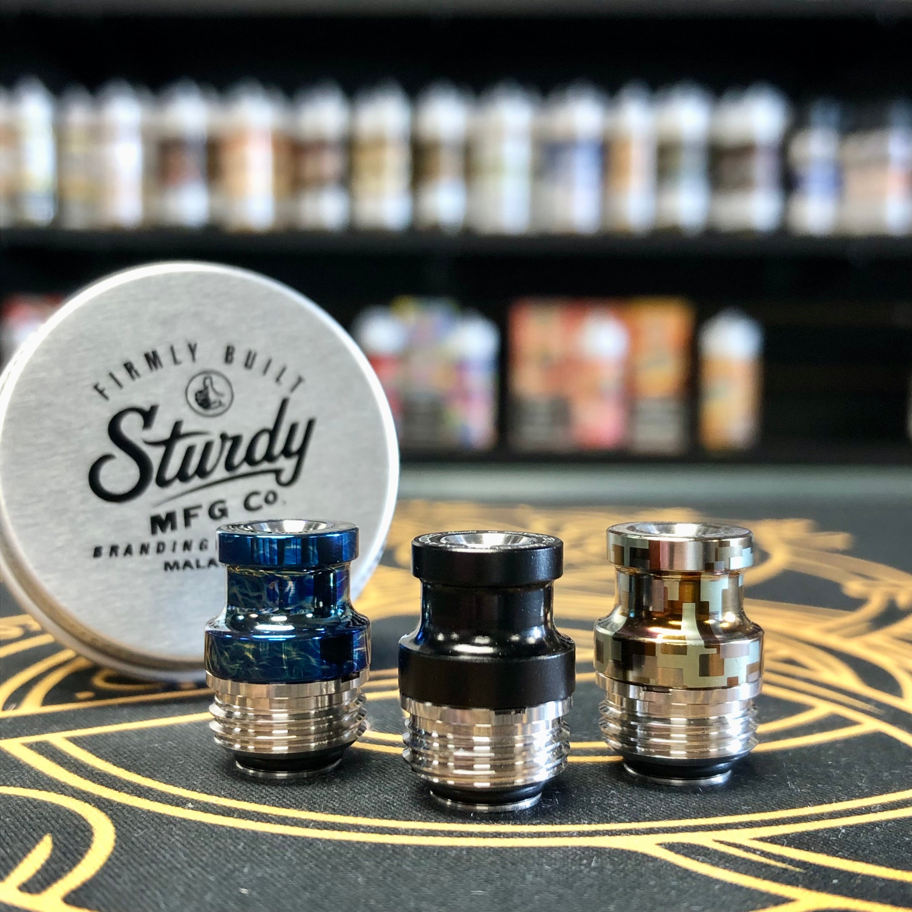Sturdy Mfg Co. presents the Hybrid SturdyTip, a three piece integrated drip tip threaded for both Billet Box threads and dotAIO threads. These expertly engineered drip tips feature a near seamless design with buttery threads that convert from the larger Billet Box threads to the smaller dotAIO threads. Beneath the tip portion is a knurled tube with two o-rings to secure the tip.