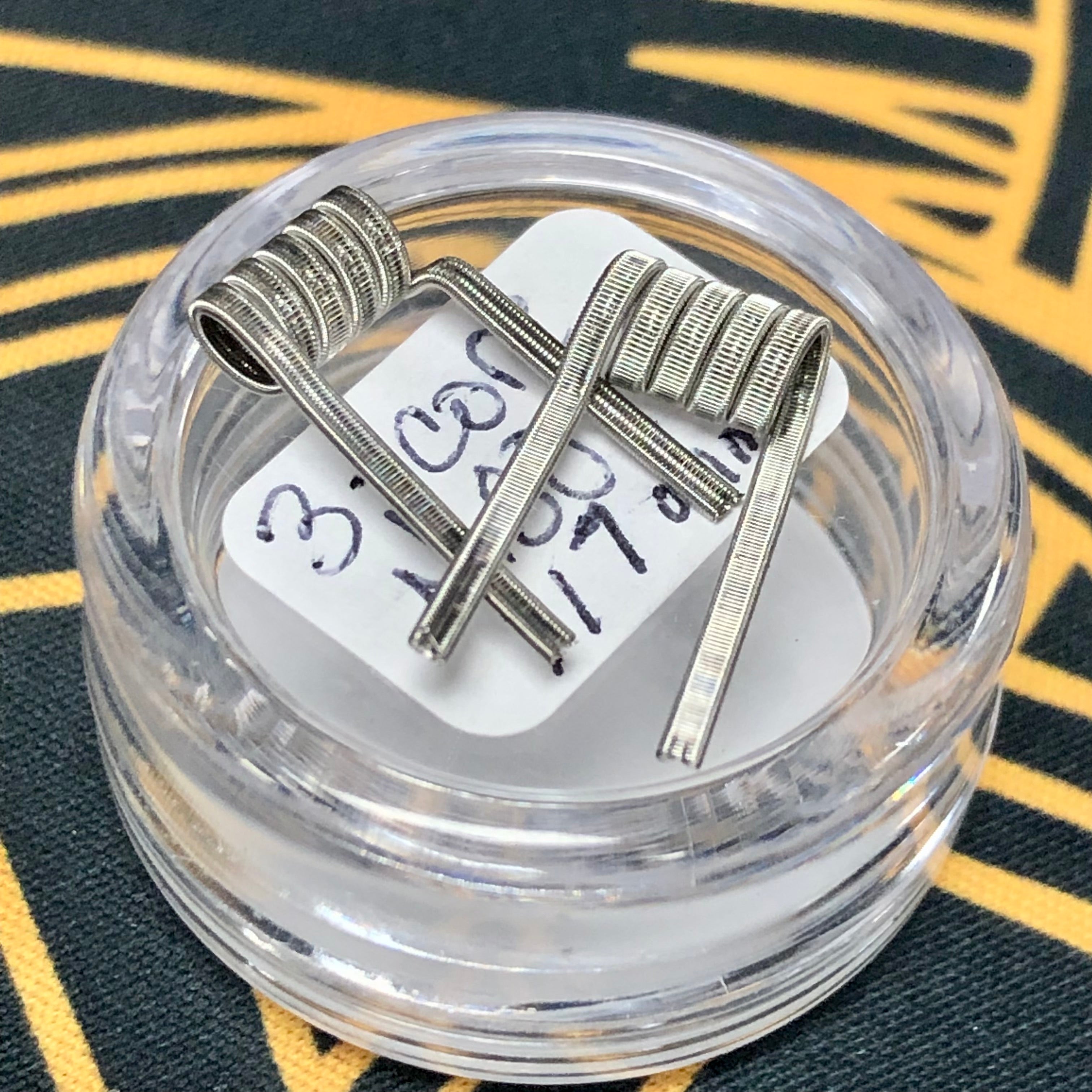 3 core staggered fused clapton (SFC), Ni80 5 wraps, .17ohm (duals)