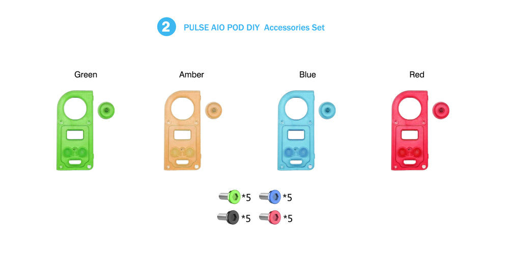 Customize your Pulse AIO from Vandy Vape with this colorful DIY accessories set. Twist off the screws to replace the panel, mix and match button colors, circuit boards and screws, to make whatever combinations you want.
