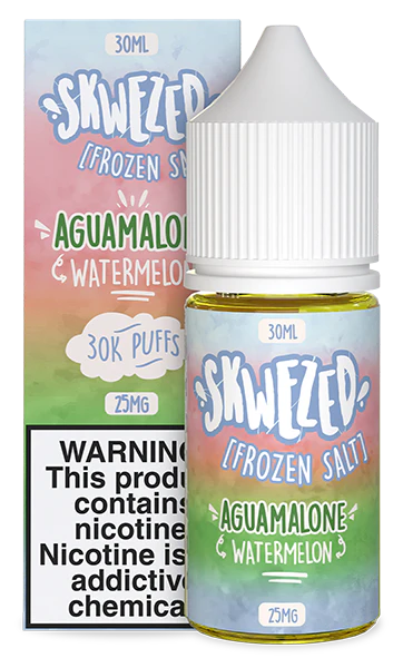 Ride a wave of watermelon magic with Skwezed’s Aguamalone Salt Nic Frozen E-Liquid! Icy, refreshing, and sweet, our Aguamalone Frozen E-Liquid is formulated to taste exactly like taking a bite of a slice of ripe watermelon on a warm, sunny day, with a cooling sensation that’ll help you beat the heat this summer! Indulge in a fresh, chilled fruity taste in every puff.